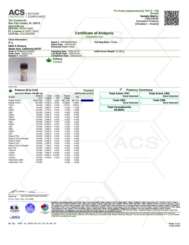 Prepare for liftoff as Pushin P’s Pure THC-P replacement pod takes you to new heights. This pod is engineered for those who appreciate a very potent high. Embrace the intensity, enjoy the clarity, and let the THC-P deliver an experience like no other.