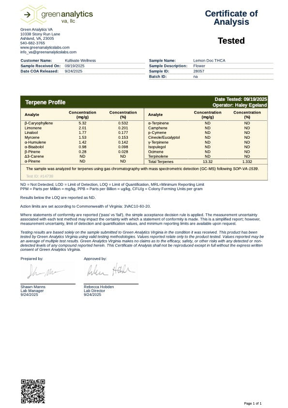 Kultivate Wellness Lemon Doc Premium THCA Hemp Flower