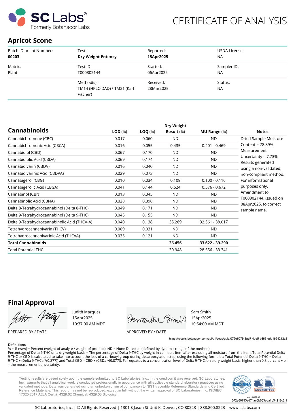 Savor the essence of Apricot Scone, a Sativa strain renowned for its uplifting and invigorating effects. Delight in its vibrant citrus aroma and sweet, introspective flavor profile, transporting you to a state of blissful euphoria and creativity. Perfect for those seeking a revitalizing and energizing cannabis experience.