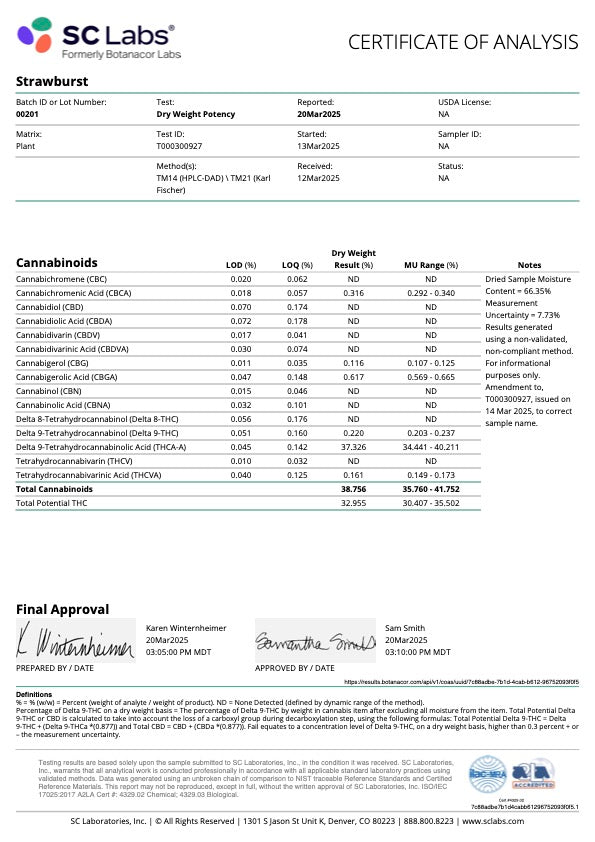 Strawburst is a vibrant, sativa strain known for its intensely fruity flavor profile and energetic, mood-boosting effects. Bred from a cross between Strawberry Cough and Kush Mints, Strawburst combines uplifting cerebral stimulation with a smooth, mellow body high. It's ideal for daytime use, social settings, or creative pursuits.