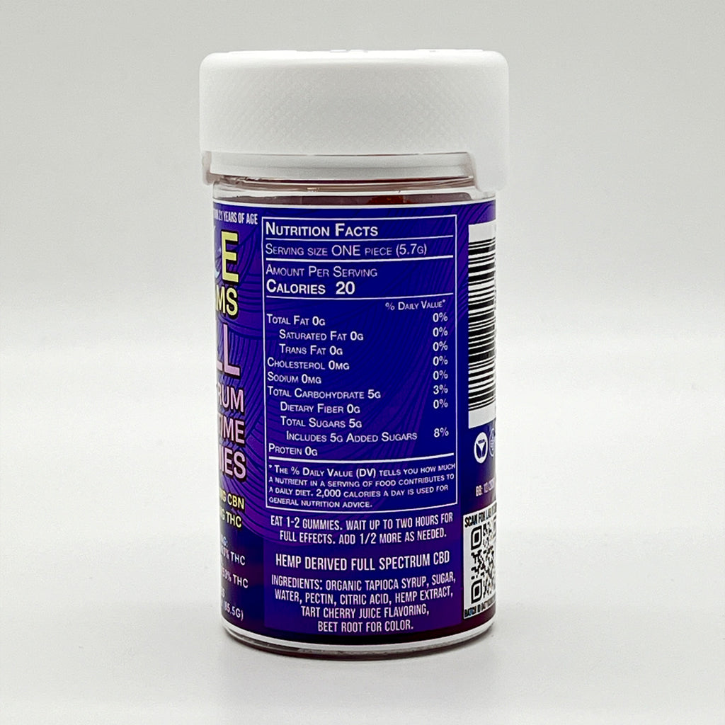 Sleep problems? Problem solved! Let us introduce you to our specially formulated Nice Dreams Sleep gummies! Our CBD:CBN:CBC:THC Sleep gummies pack 80mg of CBD, 8mg of CBN, 7mg of CBC and 3mg of THC to gently ease your mind and body into a restful night of sleep. Tart Cherry juice is used for the natural flavor to give this nighttime gummy an extra natural kick of sleep support. Each gummy packs a delicious flavor in a Vegan, Gluten-Free formula.
