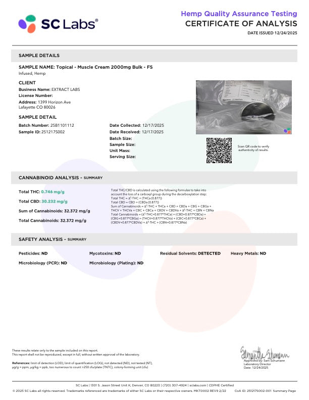 UPDATED STRENGTH! 2000mg Full Spectrum Muscle Cream. For WAY more than just muscles. Our most popular topical for over four years, this salve will bring maximum relief to any area of your body. The thick consistency allows for deeper absorption, and a little goes a very long way, so one tin will last you months!