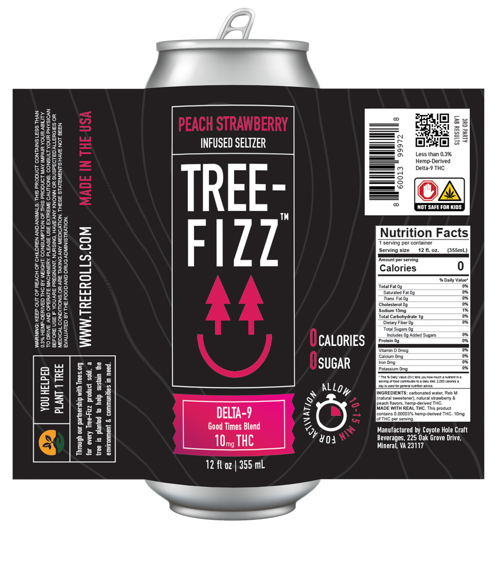When you want a refreshing beverage that makes you feel as good about the ingredients as you do from the THC, look no further! Tree-Fizz is a 0 sugar, 0 calorie, no artificial colors or flavor THC infused seltzer. Each can has a delightful 10mg of THC paired with envigorating flavors like Peach Strawberry and Blackberry.