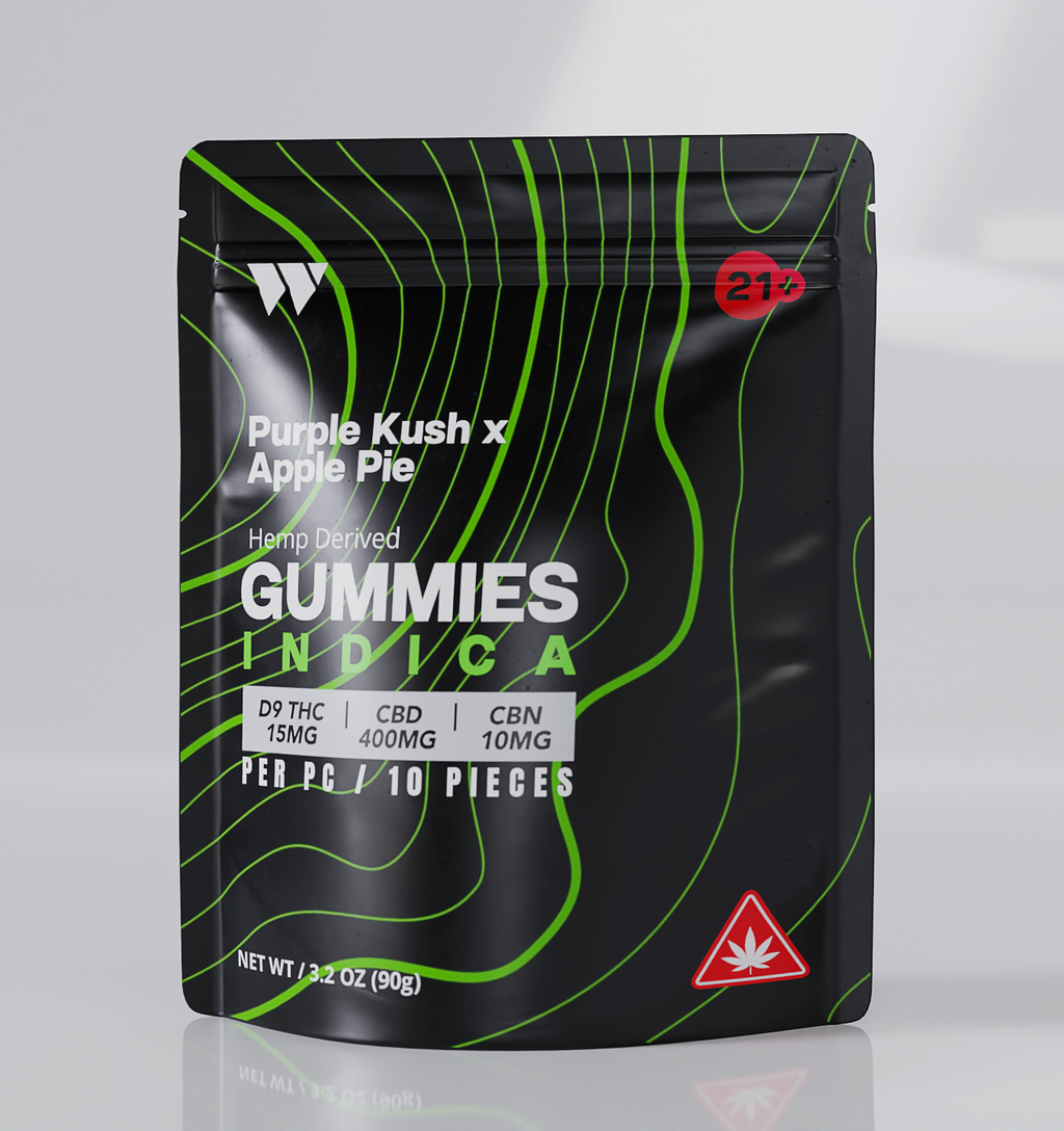 Artisan made terpene infused gummies with micro dose amounts of CBD, THC & CBN. Infused with Purple Kush Terpenes and Apple Pie Flavoring.